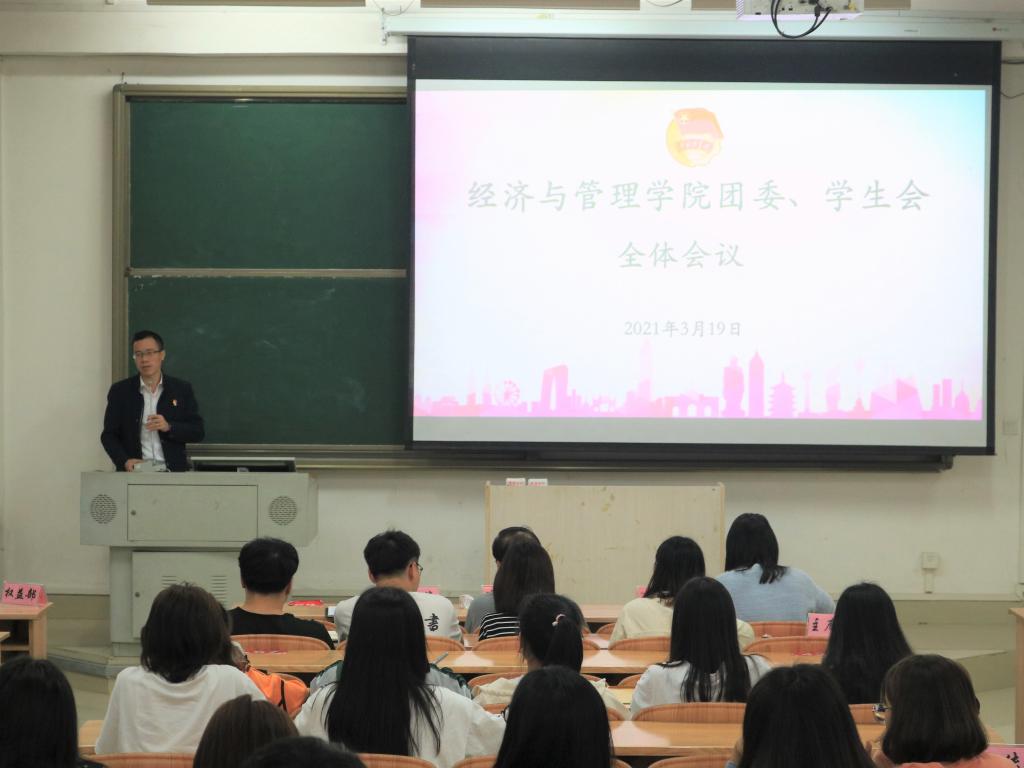 经管公司召开2021年春季新学期第一次团委、员工会全体会议