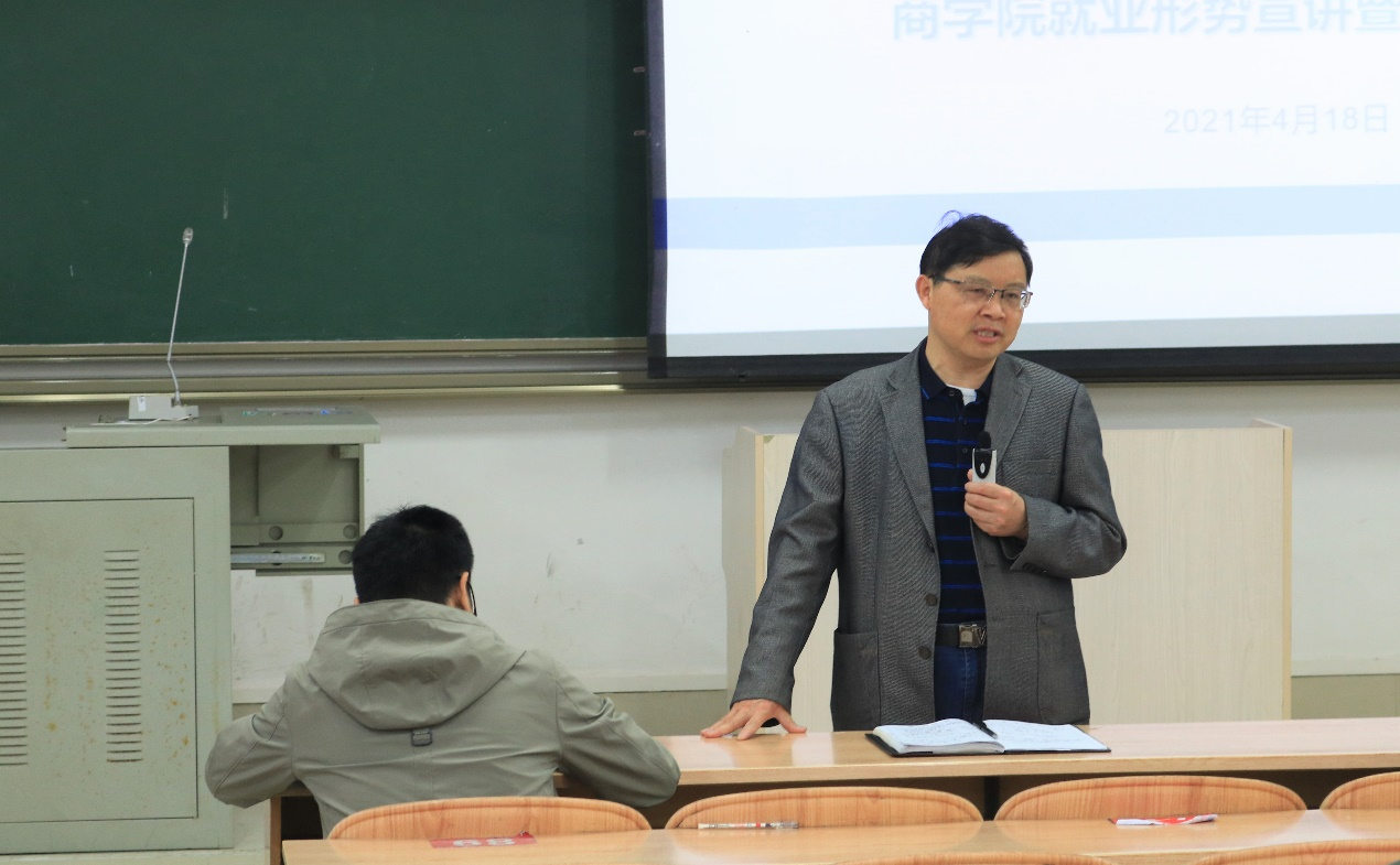 覃举东就国家政治战略、员工的责任和转变就业观念三个方面向同学们进行了详细全面的讲解,同时鼓励同学们要认真学习,攻坚克难,通过自己的努力,不断获取新知,丰满自己的羽翼。
