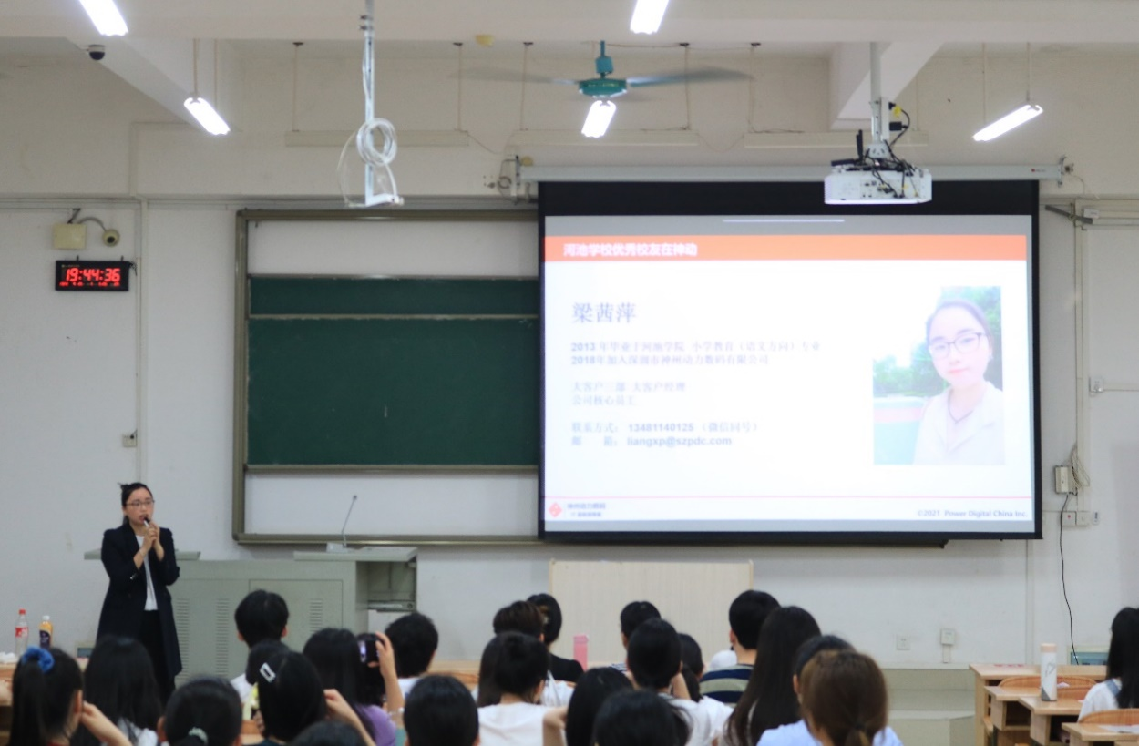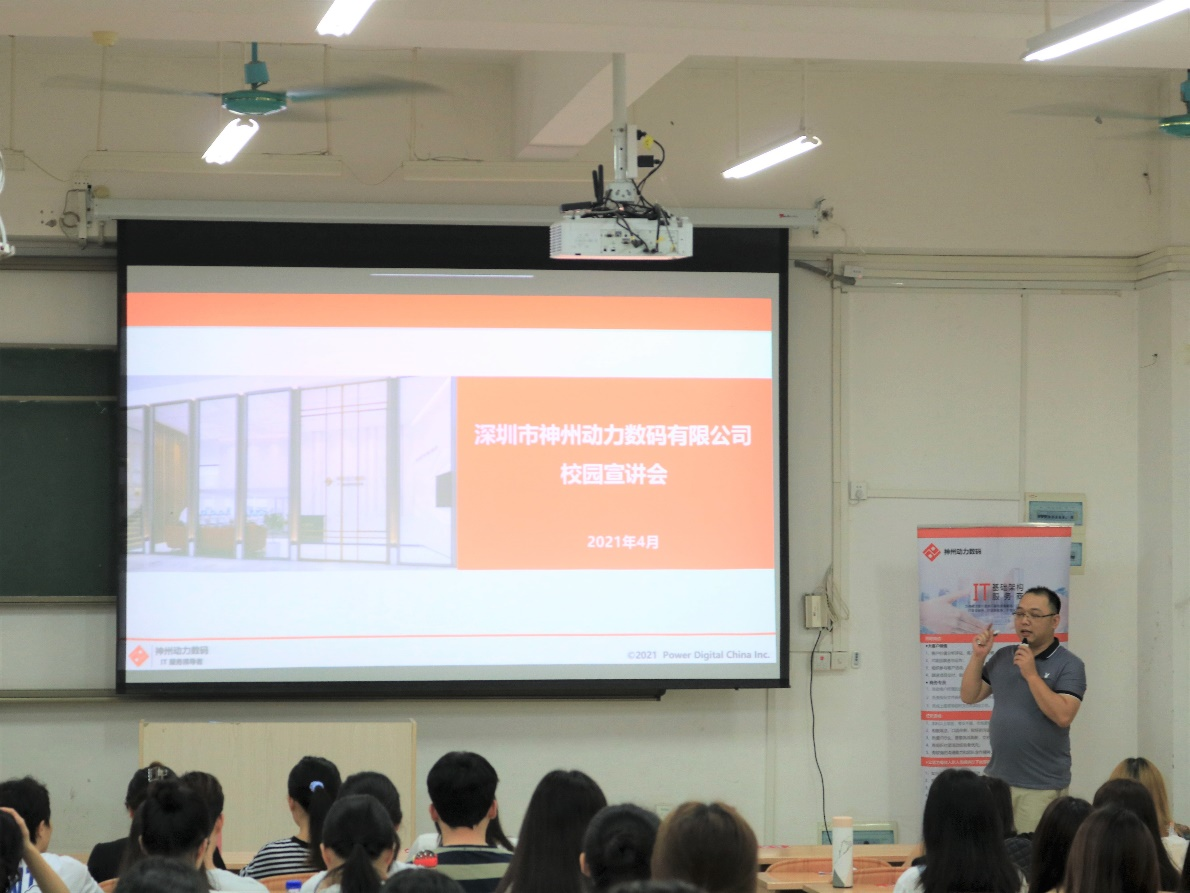 会上,深圳市神州动力数码有限公司就公司情况、企业文化、公司环境、招聘流程和晋升程序等方面与同学们进行交流,并开展现场答疑互动环节。该公司核心员工梁茜萍(公司09级毕业生)在会上鼓励同学们积极参加面试,把握锻炼与提升自我能力的机会。