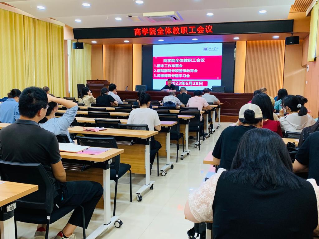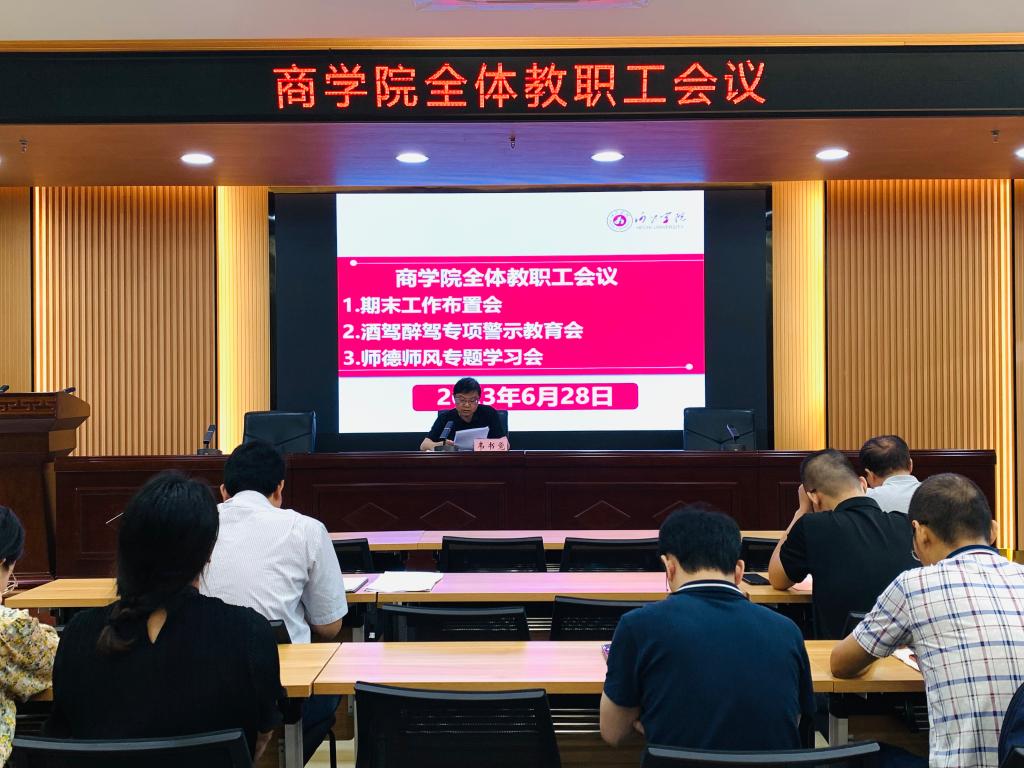 会议分为三个议程,即期末工作布置会、酒驾醉驾专项警示教育会和师德师风专题学习会。韦书觉在会上传达了公司期末工作会议精神,并结合公司实际,对党风廉政、意识形态、期末安全稳定、毕业生就业等工作提出了具体要求及安排部署。