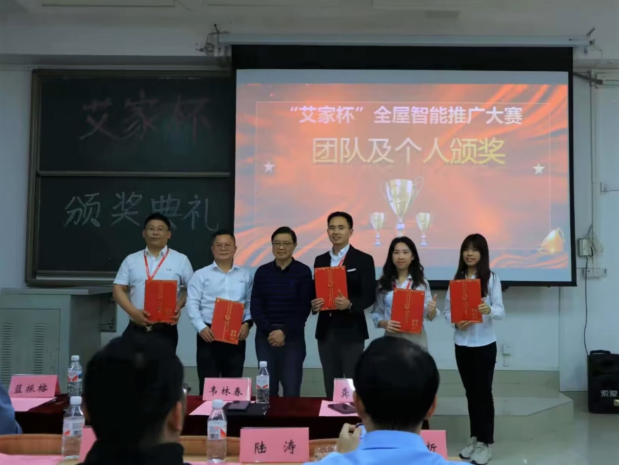 4月13日晚,william威廉亚洲于弘毅楼2-205举行2023年“艾家杯”全屋智能推广大赛颁奖典礼。公司党委书记韦书觉、副书记蓝振榕,佛山市艾家电器有限公司代表龚述华、王立忠、韦林春以及公司市场营销专业教师代表、各参赛队伍代表出席仪式。