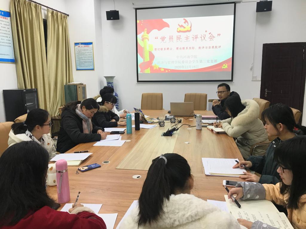 12月18日晚,经管公司员工第三党支部于弘毅楼2-208召开民主评议会和党员活动日主题会议,支部书记黄挺龙及32名党员同志参会,会议由骆文丰同志主持。