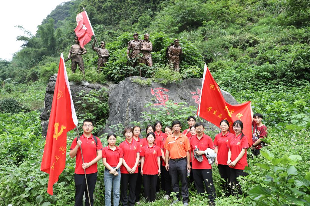 5月22日下午,公司党委书记韦书觉率队公司党建、学工队伍及员工干部代表共计50余人赴宜州区怀远镇开展“重走红军路 建功新时代”党纪学习教育主题党日活动。活动邀请河池市宜州区人大常委会办公室四级调研员李会华参加。
