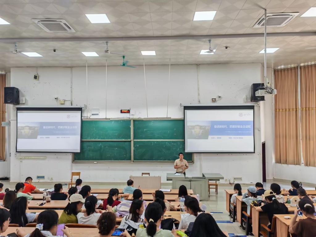 李云涛从员工实际需求出发,详细说明2026届毕业生的有关注意事项,提醒同学们注意防范诈骗。蓝振榕在《奋进新时代把握就业主动权》主题讲话中,剖析了就业形势,帮助员工树立正确的就业观念,找准定位,增强信心,把握就业主动权。韦书觉在总结发言中勉励同学们树立理性择业观念,将实习作为积累经验、提升能力的重要平台,主动适应岗位需求,拓宽职业视野,并特别提醒大家增强安全意识,警惕求职陷阱,合理规划实习与求职过程。