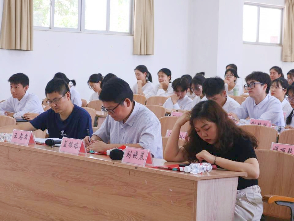 在大会中,7名竞选人依次上台发言,以PPT的形式进行自我介绍,同时在问答互动环节中展示其智慧和精神风貌。蓝振榕在总结中肯定了上一届团委、员工会成员们的成绩,也指出了目前团委、员工会工作的不足之处,要求新一届团委、员工会成员们明确定位、勿忘宗旨,保持初心、严格要求自己,和同伴间要团结协作、密切配合,为同学们提供更好的服务。