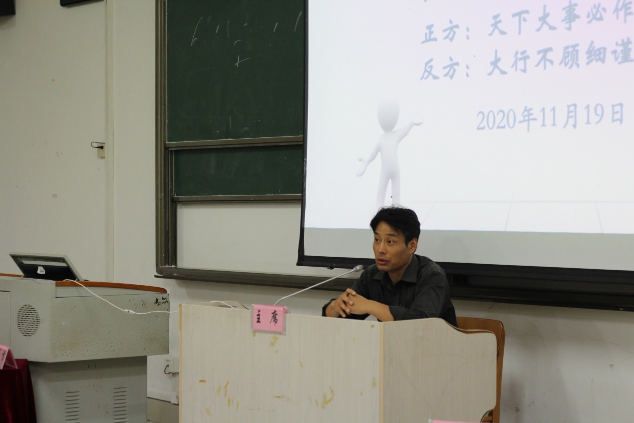 此次比赛中,六支队伍围绕辩题 “相处容易相爱难还是相爱容易相处难”、“知足常乐还是不知足常乐”、“天下大事必作于细还是大行不顾细谨”进行两两对决。赛场气氛紧张热烈,各个环节中双方辩手思维严密,据理力争,你来我往,互不相让,每一次精彩的反击都迎得场上掌声不断。
