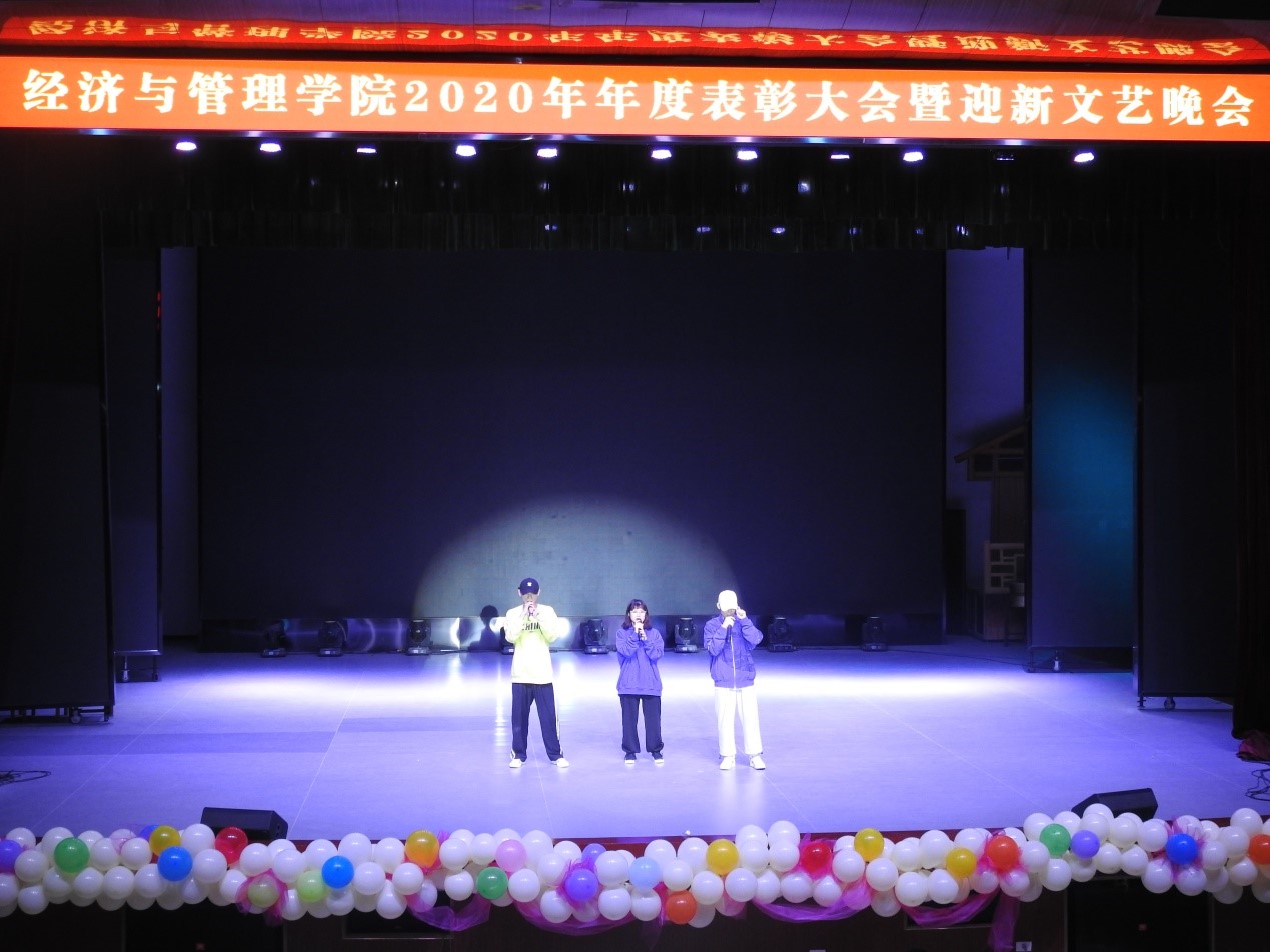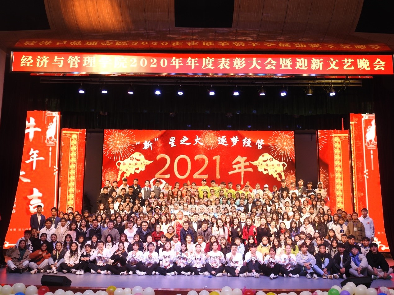 11月28日晚,公司 “‘新’星之火,逐梦经管”2020年度表彰大会暨迎新文艺晚会于东区礼堂隆重举行。公司党委书记韦书觉、党委副书记龚丁海、副经理韦福巍以及教师代表参加此次活动,与1000余名学子欢聚一堂,共赏汇演。