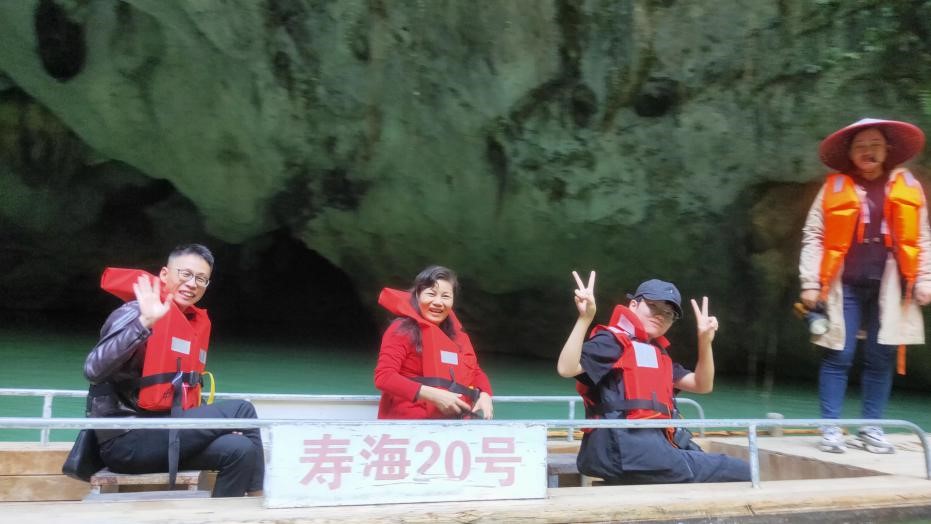 全体成员到达巴马后,与专业合作单位“华昱三生公司”相关领导及工作人员展开了深入的学习交流,并充分了解当地景区的规划以及开发状况。随后,师生们依次考察了巴马百魔洞、百鸟岩溶洞、凤山县三门海景区三处景点;体验长桌宴并观看歌舞剧《梦.巴马》。