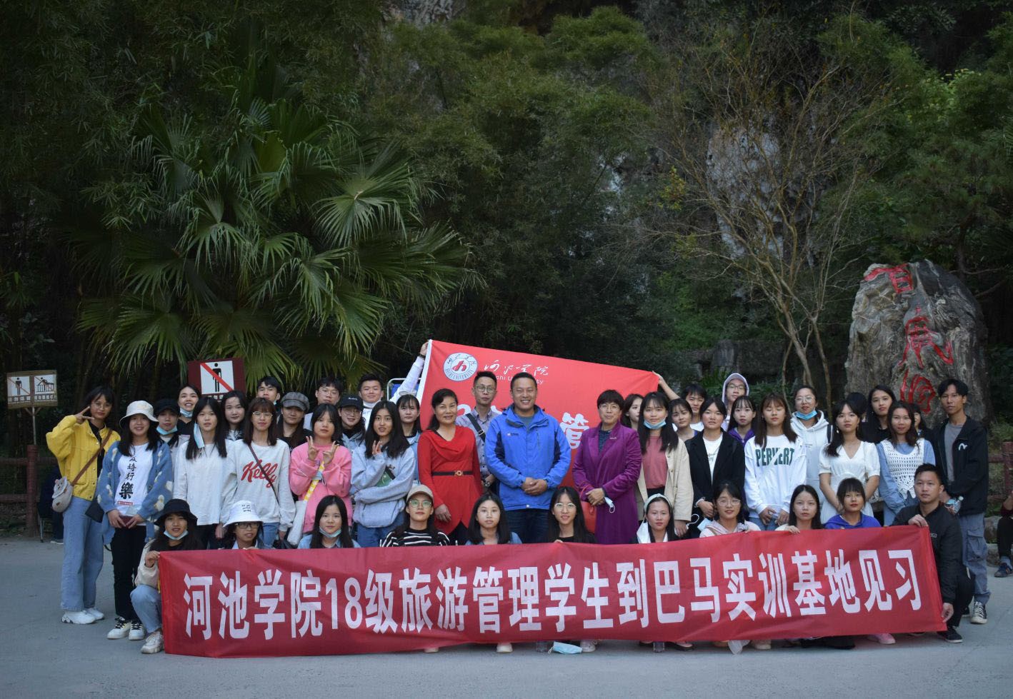 11月10日上午,公司18级旅管专业39名员工在校办主任蓝色、系主任王强、专业老师罗茹、蔡霞的带领下,前往巴马实习基地开展为期两天的实训活动并取得圆满成功。