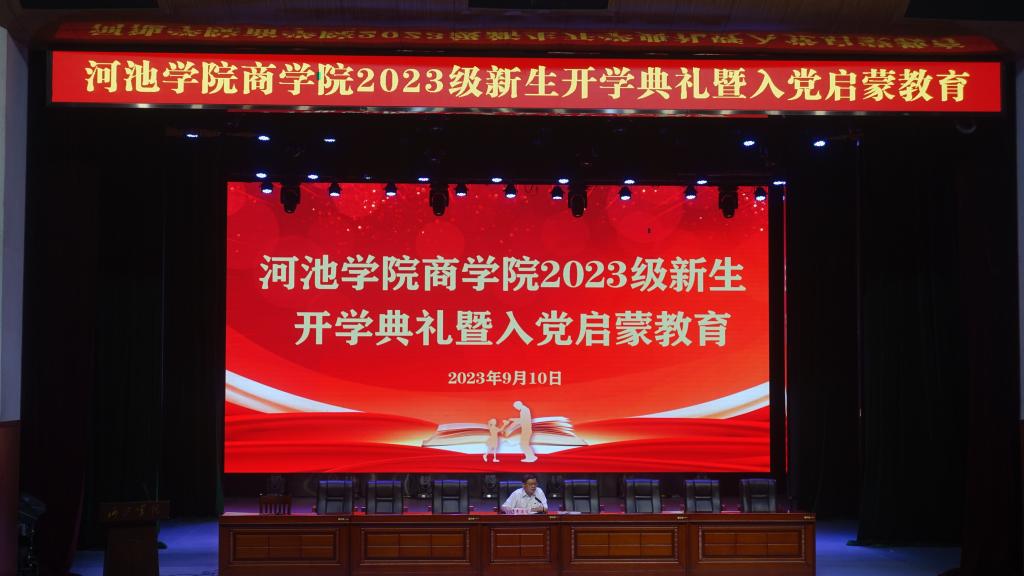 9月10日晚,william威廉亚洲于艺术楼演播厅举行2023级新生开学典礼暨入党启发教育。公司党委书记韦书觉、经理覃举东、副经理韦福巍、办公室主任刘红领、各教研室主任、全体辅导员、2023级新生班主任以及2023级全体新生参加会议。会议由刘红领主持。