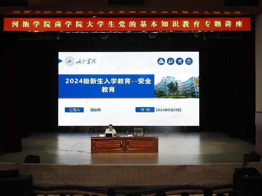 韦书觉以《我们老员工为什么要了解中国共产党——从“四史”学习谈起》为题,在讲座中指出党史教育是开展老员工思政教育的重要内容,并强调要以党史学习教育为契机,将党史的滋养转化为奋斗的不竭动力和解决实际问题的能力。蓝振榕从校园安全、交通安全、消防安全、网络安全等多个方面,结合生动的案例和详实的数据,向同学们详细讲解了安全知识和防范措施。