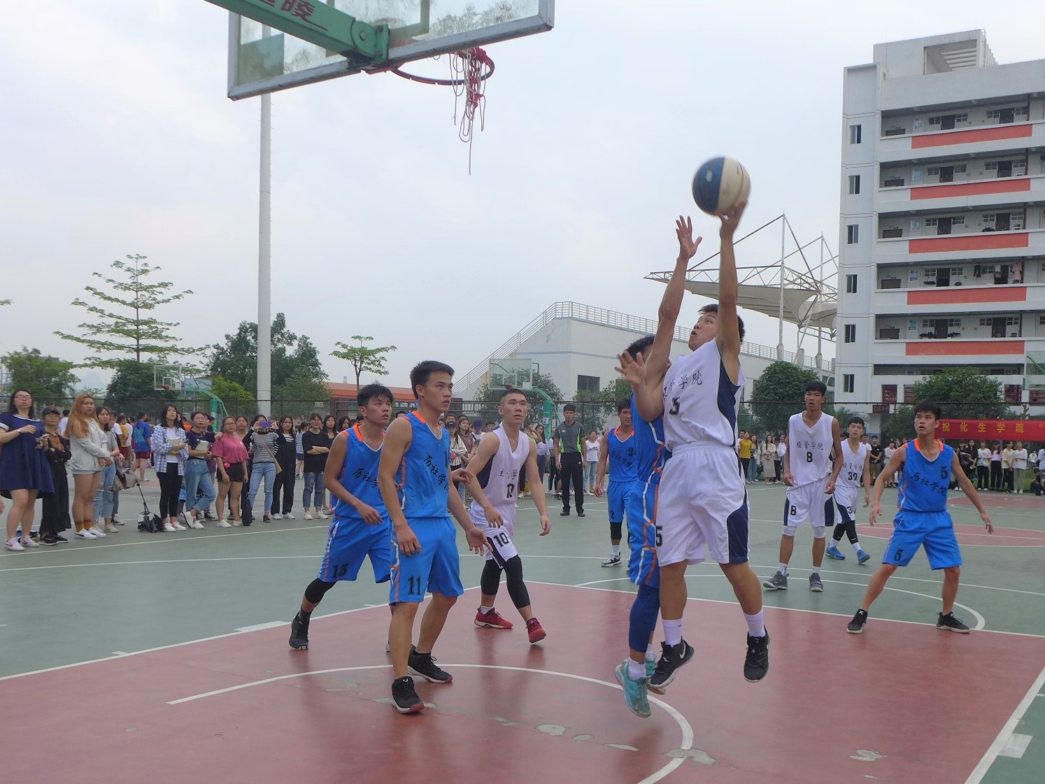 4月23日下午,“五四杯”系列球赛之篮球赛男篮、女篮四强争夺赛于东区塑胶篮球场火热开赛。在两场比赛中,公司男篮、女篮分别对阵历史与社会公司男篮、女篮。公司辅导员黄挺龙、王忠文、方容兰到场观看本次比赛,公司各专业员工积极到场为球员们加油助威。