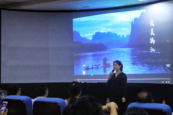 图二:14号选手唐新清在讲解桂林漓江景区
