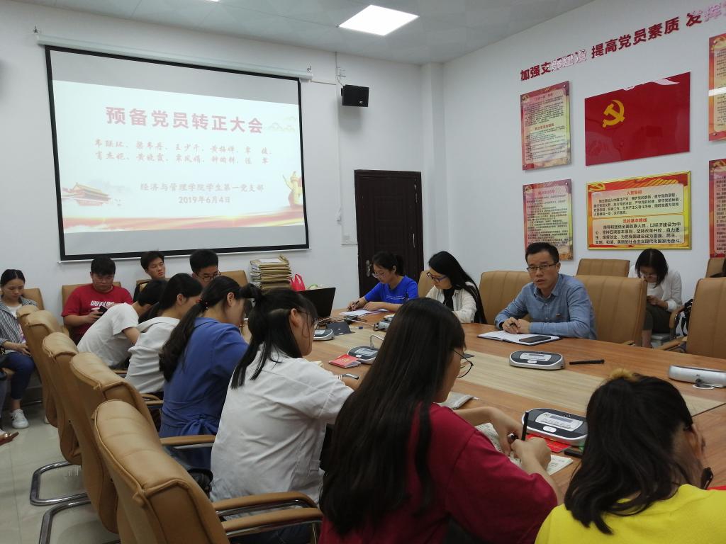 2019年6月4日晚,经管公司员工第一党支部预备党员转正大会在弘毅楼二区208会议室召开,公司党委副书记龚丁海、员工第一党支部书记方容兰出席会议,员工第一党支部全体党员、预备党员以及发展对象参会。本次会议由李凡同志主持。