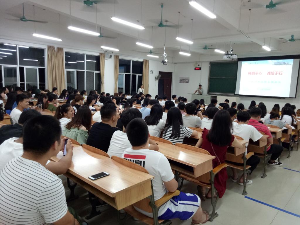 会上,方老师首先介绍了什么是感恩,并提出了感恩是赢取美好人生的资本,是一种追求幸福的过程和生活方式,是一种利人利己的责任更是一种不求回报的自觉和奉献。感恩要从从学会珍惜开始,塑造感恩心态,从感恩父母开始等几个观点,使同学们更具体、更深入的了解和感受感恩之心。随后就诚信问题,方老师主要介绍了诚信的具体含义,作为大学毕业生在今后的工作生活中该如何做,从政治信仰、人际交往、经济生活、就业创业等方面让同学们将讲诚信、守诚信践行到生活中。