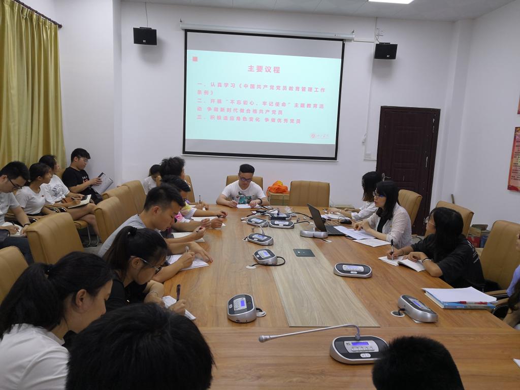 会议由支部书记方容兰同志主持召开,首先带领全体党员同志认真学习《中国共产党党员教育管理工作条例》,强调党员要坚持党的政治建设为统领,践行党员新思想、适应新时代、展现新作为。同时开展“不忘初心、牢记使命”主题的教育活动,教育全体党员要争做新时代合格共产党员。其次为了让员工党员积极适应角色变化,会议进行了交流座谈会,毕业生党员与其他党员就学习、工作和生活方面的经历进行交流,毕业生党员同志分享选调生、考研和工作的经历。