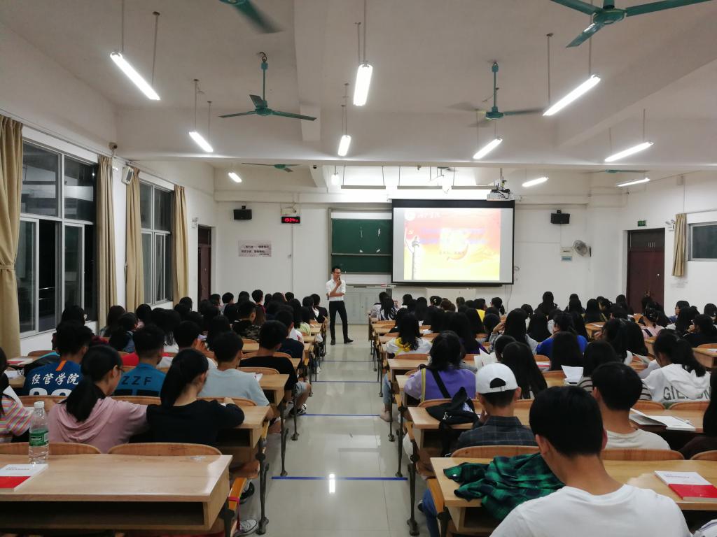 2019年10月20日晚,经济与管理公司员工第三党支部在弘毅楼2-103教室开展2019级新生入党启蒙教育,党支部书记黄挺龙老师出席本次会议并担任主讲人,2019级贸易经济、旅游管理专业全体同学参与本次会议。