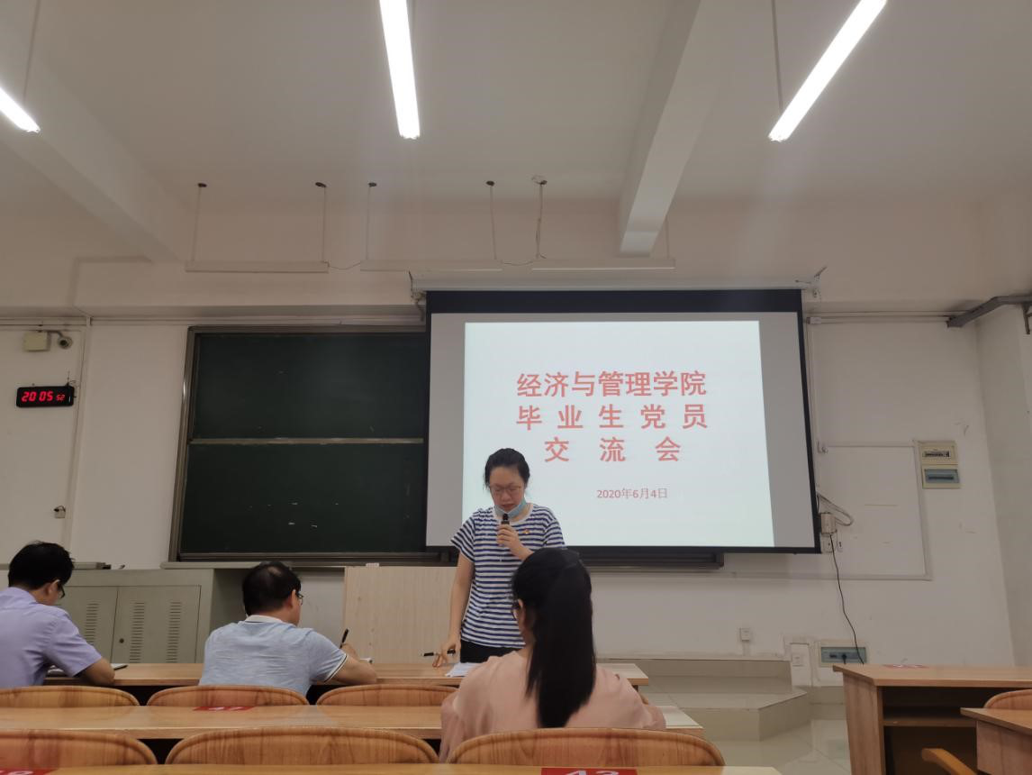 2020年6月4日19:30,经济与管理公司毕业生党员交流会于东区2-403召开,党委书记韦书觉,党委副书记龚丁海,支部书记李云涛与毕业生党员同志进行了深入交流。