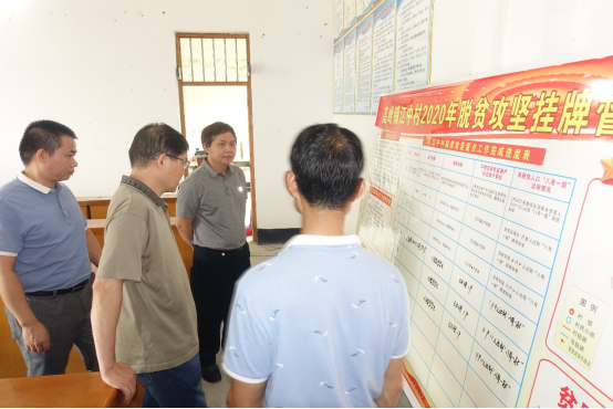 在江中村村村部,韦书觉和覃举东详细了解了公司驻村干部魏征在江中村开展工作和生活情况,代表公司表示了亲切的慰问。魏征详细介绍了江中村的美丽乡村建设、扶贫工作和产业发展情况。村主任卢宁介绍了江中村的基本情况、江中村的发展规划等。