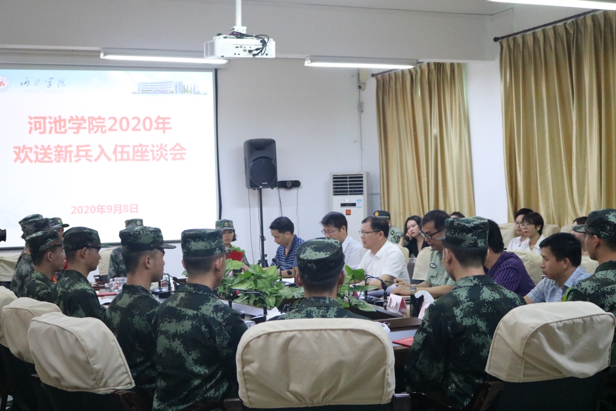 入伍新兵代表在座谈会上表达了对母校培养的感激,并表示,要以军人和老员工的双重标准来严格要求自己,在军队中刻苦训练、尽心尽责,为母校争光。