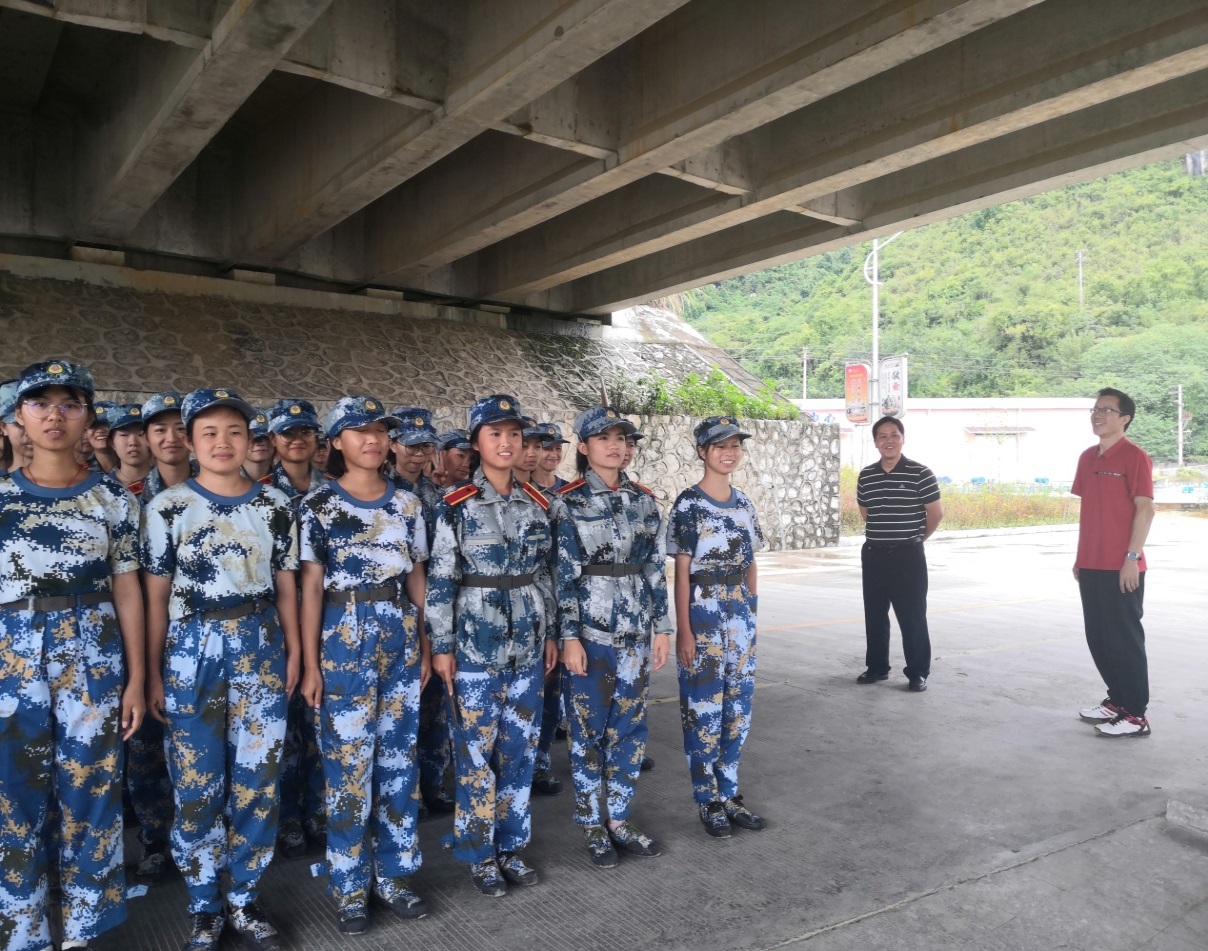 军训场上,韦书觉向参训新生表示亲切地问候,并勉励新生科学,文明,规范训练;树立正确的人生观,价值观。他表示,新生要把军训期间养成的良好品德和作风带到今后的学习生活中,为谱写美好的大学诗篇打下坚实根基。覃举东关切地询问新生在军训期间遇到的困难,并耐心地为新生排忧解难,希望新生继续发扬不怕苦不怕累的精神,坚持到军训的最后一刻。龚丁海对新生表示期望与关心,他希望新生在汇报表演时能取得好成绩,也祝他们的老员工活从军训开始一路高歌。