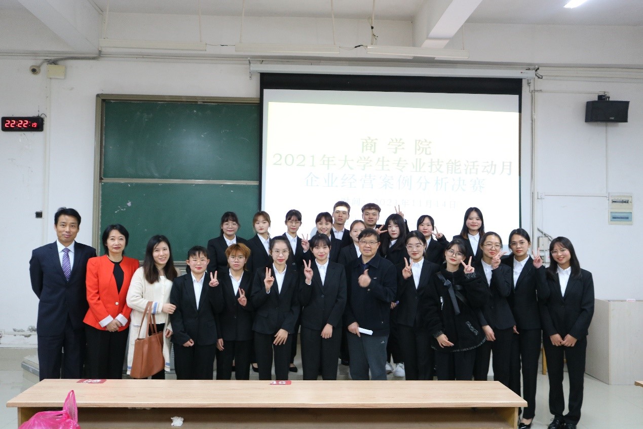 11月14日晚,公司于弘毅楼2-101进行企业经营案例分析决赛。公司党委书记韦书觉、人力资源管理系主任刘智、专业老师赵路、刘珊佑、黄子津担任本次比赛的评委。