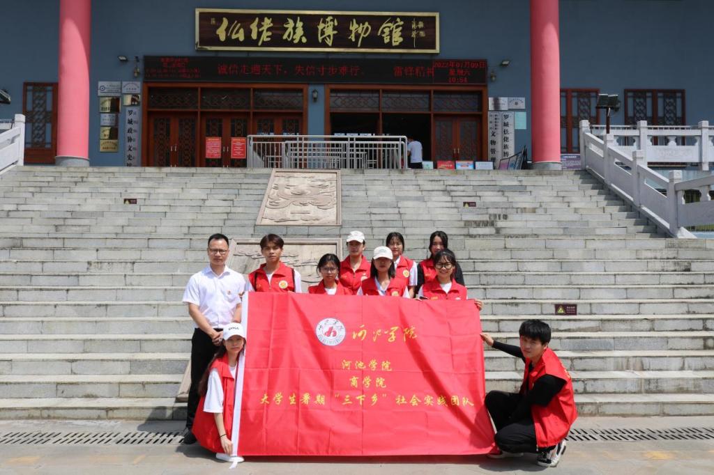 活动分为三个部分,参观河池市罗城仫佬族自治县成龙湖公园罗城仫佬族博物馆、参观韦一平烈士纪念馆及瞻仰烈士陵园。在此过程中,同学们学习当地文化、风土人情,走近红色历史,深入了解时代英雄,并通过问卷调查的方式对罗城红色旅游和农产品市场销售情况进行调研。