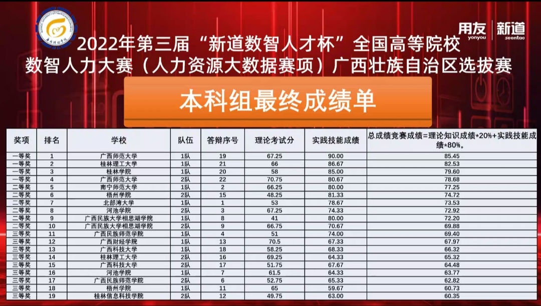 【喜讯】公司学子在第三届“新道数智人才杯”全国高等院校数智人力大赛(人力资源大数据赛项)广西壮族自治区选拔赛中喜获佳绩