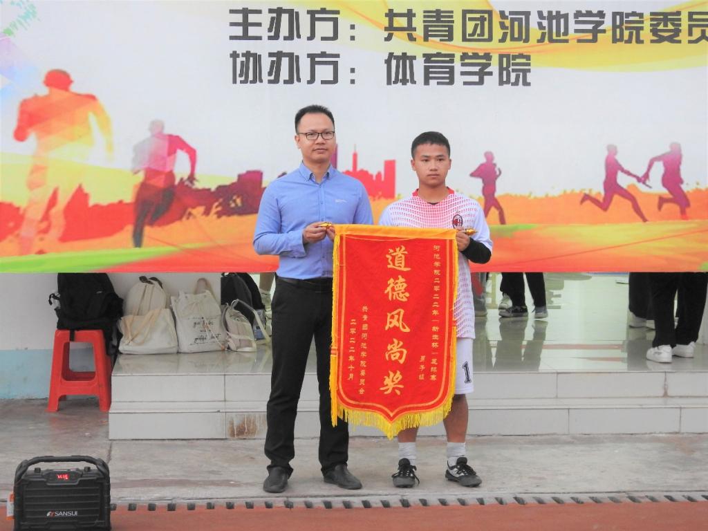 随着哨声吹响,激动人心的足球赛开始,运动员们展开攻势,比赛中充分展现出了体育竞技精神,双方运动员们团结协作各自展现出他们的战略部署,上半场比赛进入白热化阶段,在下半场公司在四强追逐赛中以2:3惜败,获得体育道德风尚奖,团委书记黄挺龙为运动员颁奖。