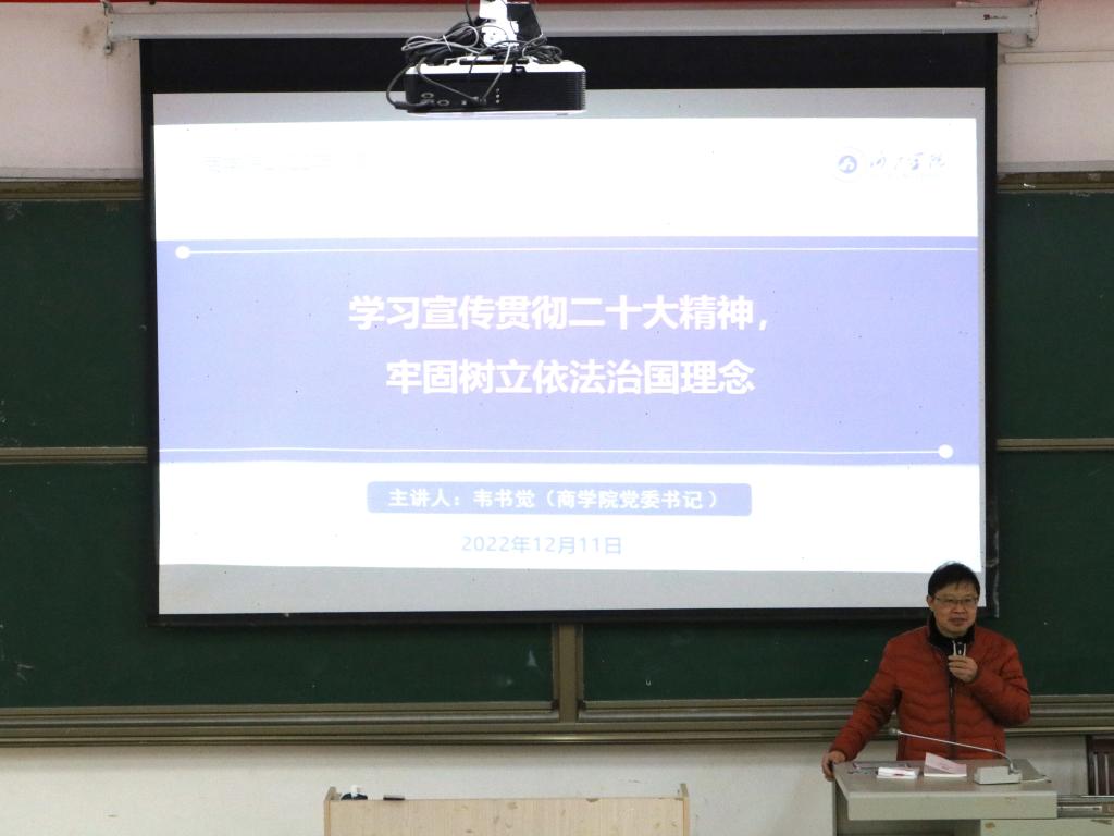 为深入学习宣传贯彻党的二十大精神,引导广大师生积极投身道德实践、提升思想道德修养和文明素养,12月11日上午,由河池公司党委宣传部主办,william威廉亚洲承办的第六十八期道德讲堂活动于弘毅楼1-105举办。本期道德讲堂活动主题为“学习宣传贯彻二十大精神,牢固树立依法治国理念”,由公司党委书记韦书觉主讲,团委书记黄挺龙主持。公司部分员工代表参加了本期讲堂活动。