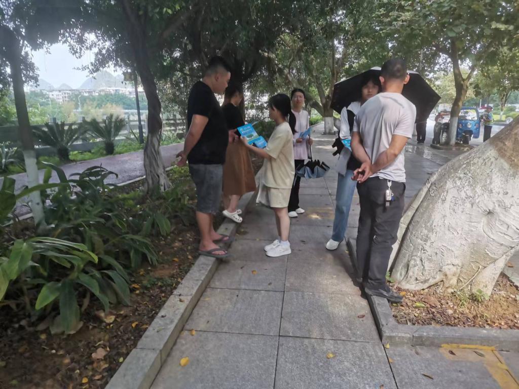 小组成员分成两批以分发禁毒防范手册的形式在桂鱼街到江滨路和桂鱼街到汽车总站两条路线上开展禁毒宣传活动,向民众讲解了毒品危害、禁毒的意义、毒品区分等内容。