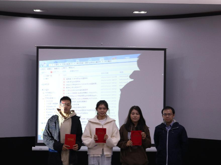 比赛中,参赛选手们以PPT的形式从自身优势、家庭因素和外部环境因素、阶段目标等方面分析,通过简洁的语言将他们对于将来职业规划清晰地展示在大家面前。何贤森总结指出了选手们目前所存在的问题并提出建议。