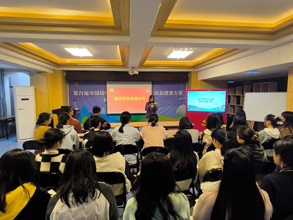 韦虹羽从《礼记·大学》论家风引入,强调了廉政家风的重要性。三位党员同志依次分享了优良廉政家风的故事,通过故事引导全体党员同志传承优良家风,提高家风意识。韦虹羽在小结中勉励大家应以好家风的文化倡导为价值导向,以对己之小家和国之大家高度的责任感和使命感,不忘来时路,为实现中华民族伟大复兴贡献青春力量。