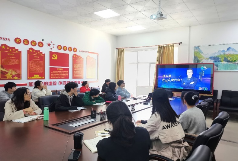 与会同志集体学习了《求是》杂志发表的习近平总书记重要文章《推进中国式现代化需要处理好若干重大关系》和《开辟马克思主义中国化时代化新境界》,并观看学习数字党课《二十大报告里·如何理解中国式现代化》。