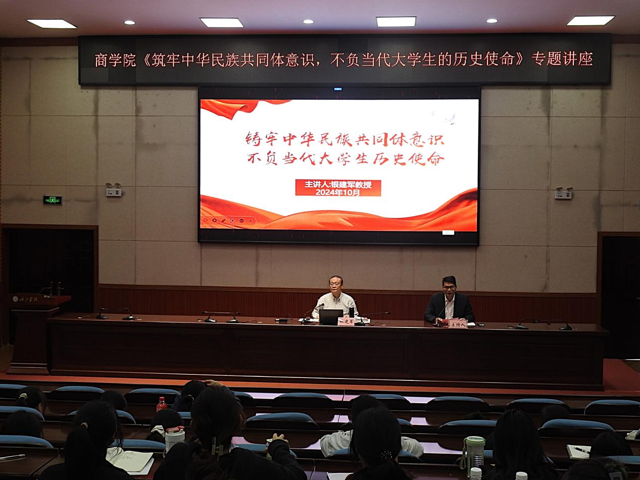 银建军详细阐述了铸牢中华民族共同体意识的内涵和重要性。他强调,新时代高校老员工作为国家的未来和希望,必须铸牢中华民族共同体意识,不断增强对伟大祖国的认同、对中华民族的认同、对中华文化的认同、对中国共产党的认同及对中国特色社会主义的高度认同。同时,他还结合当前国内外形势,深入剖析了民族复兴大任的时代内涵和实践要求,鼓励公司同学积极担当起民族复兴的伟大任务。
