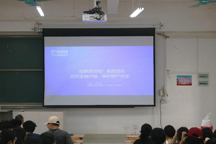 6月25日下午,“投教进百校”系列活动在弘毅楼2-205举行,国海证券公司工作人员陈云苼以“防范金融诈骗,保护财产安全”为主题开讲,本次宣讲活动由党委副书记蓝振榕主持,24级贸易经济专业和财务管理专业员工参加本次活动。