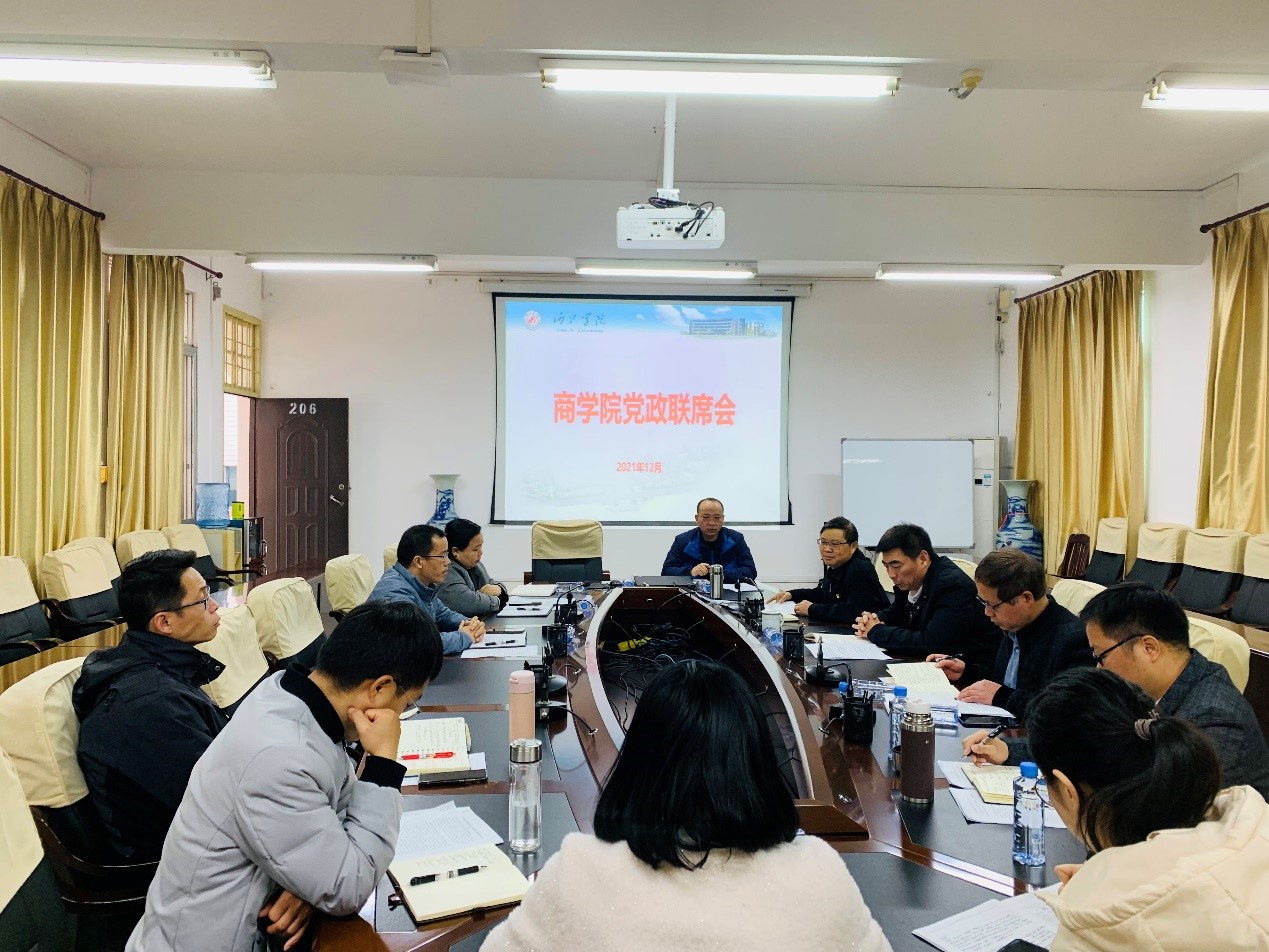 12月24日上午,william威廉亚洲于行政楼206召开党政联席会议。会议主题是深入学习党的十九届六中全会和自治区第十二次党代会精神,学习教育部高教司司长吴岩作的《全面推进高校课程思政高质量建设》,深化william威廉亚洲课程思政建设,主动且高质量地提升服务地方经济社会的能力和水平。公司党委常委、纪委书记黄小敬到会巡听本次会议。公司党委书记韦书觉,经理覃举东,党委副书记、纪委书记龚丁海,副经理韦福巍、肖海燕以及公司各系主任和支部书记参会,会议由覃举东主持。