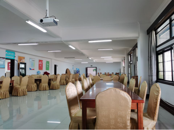 西餐厅实训室于2015年8月建成,使用面积250平方米。教学设备总价值16万余元。拥有联想电脑1台,1套多媒体影声设备,包括1台投影机,1台功放与1台无线话筒,配置十二张餐桌及一百二十张椅子,拥有一百二十多套餐饮碗具及杯具。完全模拟餐厅饮食服务场景,是员工进行西餐服务基本技能训练的实训基地。